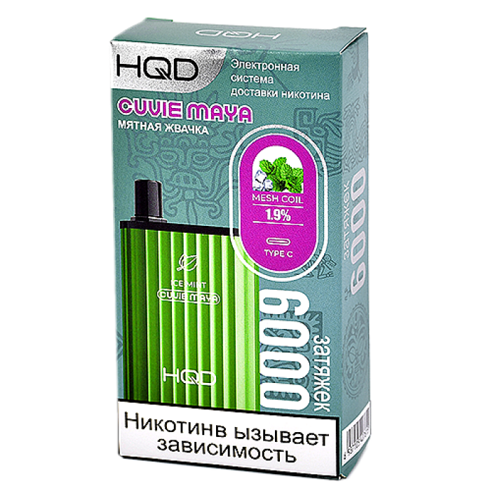 POD система HQD - Cuvie MAYA - Мятная жвачка (6000 затяжек) - 2% - (1 шт.)